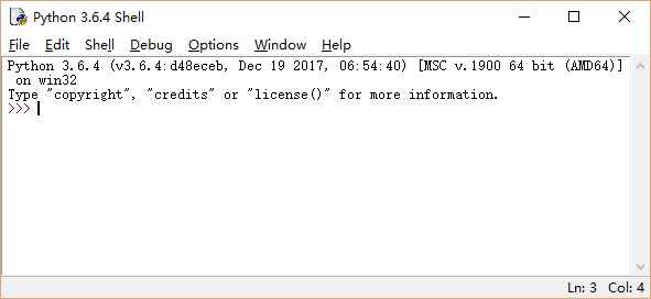 你已尝试过使用Python解释器,这是一个命令行程序,必须通过键盘输入完成所有操作。人们通常都会使用某种“集成开发环境”(Integrated Development Environment,简称IDE),在更方便的图形用户界面中编写、运行和调试程序。Python官方发行版带有一个简单的IDE叫做IDLE,意思是“集成开发与学习环境” (Integrated Development and Learning Environment),打开方法是点击Python 3.6程序组中的IDLE菜单项。IDLE窗体带有标准的菜单栏,在基本的命令行操作之外还提供编辑器等增强功能,它会调用下层的Python解释器来具体执行指令。