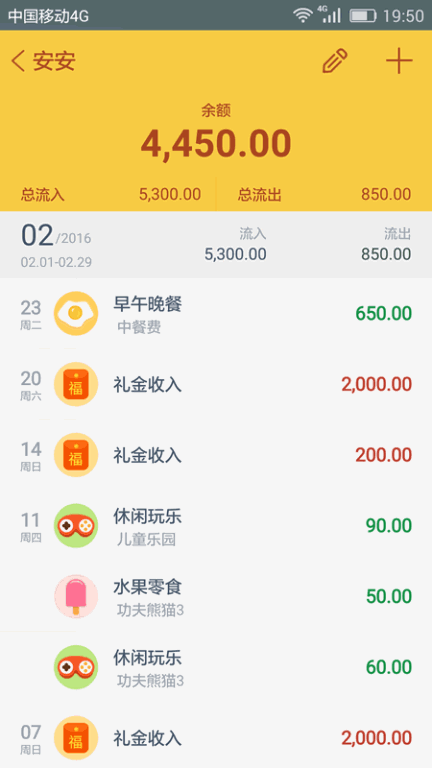 除了同类软件都能实现的基本记账功能,随手记还提供了许多非常实用的特色功能:拥有丰富的分类和子类,并且分类和子类都可以自定义;可以设置记账模板,对于一些经常记录的分类,比如早午晚餐,日常用品都可设置模板,记账时只需输入金额即可;可以将每月固定的支出或收入自动记录账目;可以为每个家庭成员例如孩子设立专门账户统一收支等等。