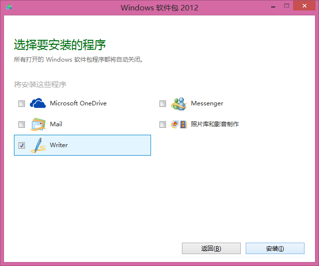 要使用Writer,首先到微软官网下载Windows软件包并运行,点击“选择要安装的程序”: