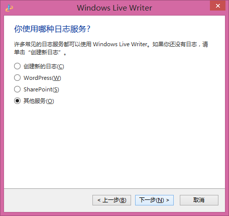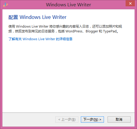 安装完成后即可运行Windows Live Writer,第一次启动时会显示配置向导,点击“下一步”: