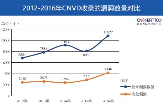 2016 年,国家信息安全漏洞共享平台(CNVD)共收录通用软硬件漏洞 10822 个,较 2015 年增长 33.9%。其中,高危漏洞收录数量高达 4146 个(占38.3%),较 2015 年增长 29.8%;“零日”漏洞 2203 个,较 2015 年增长82.5%。漏洞主要涵盖 Google、Oracle、Adobe、Microsoft、IBM、Apple、Cisco、Wordpress、Linux、Mozilla、Huawei 等厂商产品,其中涉及 Google 产品(含操作系统、手机设备以及应用软件等)的漏洞最多,达到 819 个,占全部收录漏洞的 7.6%。按影响对象类型分类,应用程序漏洞占 60.0%, Web 应用漏洞占 16.8%,操作系统漏洞占 13.2%,网络设备漏洞(如路由器、交换机等)占 6.5%,安全产品漏洞占 2.0%,数据库漏洞(如防火墙、入侵检测系统等)占 1.5%。2016 年,CNVD 加强原创通用软硬件漏洞的收录工作,成为全年漏洞收录数量一个新的增长点,全年接收白帽子、国内漏洞报告平台、安全厂商等报送的相关漏洞 1926 个,占全年收录总数的 17.8%。